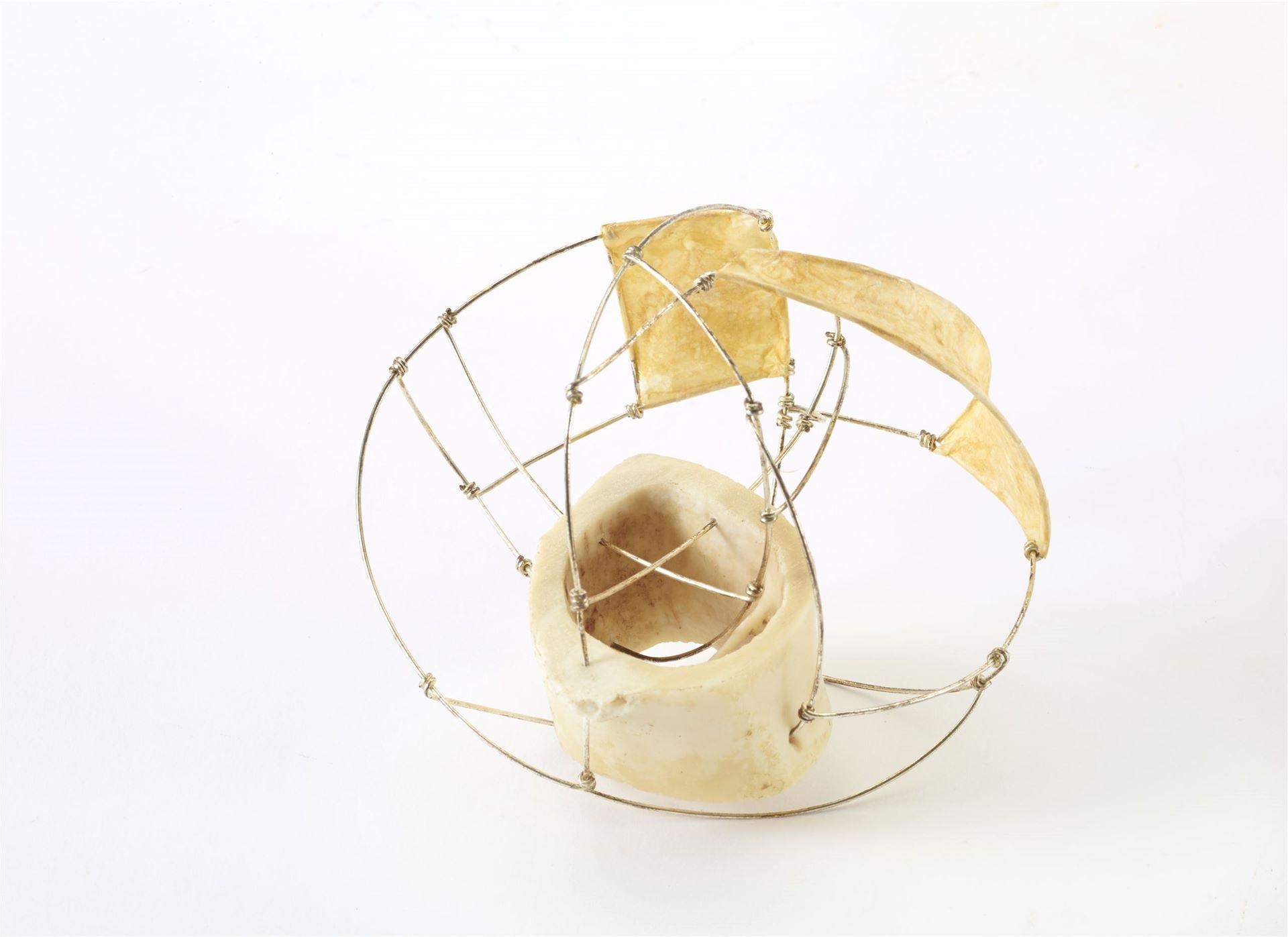 Anders als von rostendem Eisendraht, geht von Silberdraht eine gewisse Wertigkeit aus, die sich auf die Plastik überträgt. Die in der Formensprache vermittelte Morbidität wird dadurch in Frage gestellt, kann sogar negiert werden.